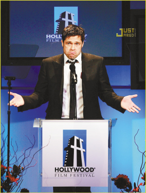 布拉德·皮特和《刺殺神槍手》的另一個(gè)主演凱西·阿弗萊克共同亮相,后者也因?yàn)檫@部電影獲得了一個(gè)“年度突破男演員”的獎(jiǎng)項(xiàng)。理查·吉爾因?yàn)椤厄_局》(The Hoax)而獲得了年度男演員獎(jiǎng),約翰·特拉沃爾塔因?yàn)樵凇栋l(fā)膠》中的表演獲得了年度男配角獎(jiǎng),雖然他在片子里反串了一個(gè)大媽。
