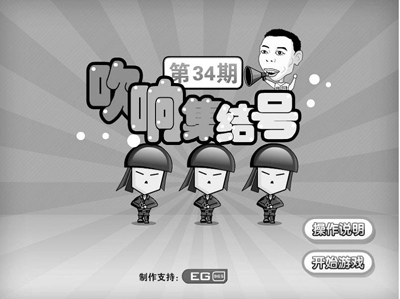 記者發現,目前有數十萬網友參與過互動惡搞《集結號》,其惡搞方式就是拿馮小剛開涮,游戲稱名導馮小剛攜年度大片《集結號》再戰內地電影市場,但當今觀眾的欣賞水平越來越高,要求也越來越高,導演面臨的壓力很大。究竟《集結號》能否吹響,請你助他一臂之力。而游戲規則就是:點擊鼠標左鍵擊斃沖上陣地的群眾演員,同時注意不要打中摻雜在其中的明星演員。如果讓敵人沖上陣地或是誤殺一定數量的明星演員游戲即失敗,參與者的任務就是,請堅守陣地直至集結號吹響。