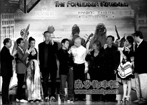 現場有記者問,電影原本的噱頭是找成龍和李連杰來演一部非武打片,李連杰說:“我們兩人不打?那記者和觀眾可能會打起來,會說騙人,買票進來不看這兩個人打,難道真的看這兩個人談情說愛嗎?”