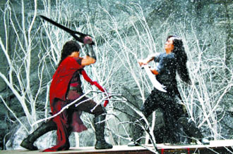 發(fā)布會(huì)當(dāng)天拍攝的是聶風(fēng)和步驚云的最后一場(chǎng)雪中決斗戲,這也是全片的一場(chǎng)重頭戲。在拍攝時(shí)還發(fā)生了一點(diǎn)“意外”,鄭伊健的劍不小心打到了郭富城的頭上,現(xiàn)場(chǎng)工作人員非常緊張,郭富城安慰大家說(shuō)沒(méi)關(guān)系,沒(méi)流血,結(jié)果拍攝結(jié)束,郭富城摘掉假發(fā)后才發(fā)現(xiàn),被打到的地方竟然腫得老大,郭富城打趣道:“腫得像乒乓球,就當(dāng)迎接奧運(yùn)了!