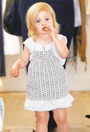 中新網6月26日電 “性感女神”安吉莉娜·茱莉與男友布拉德·皮特的親生女兒希洛(Shiloh),去年在老爸的新片《班杰明的奇幻旅程》(The Curious Case of Benjamin Button)中亮相,該片預告最近在網絡上曝光,希洛坐在爸爸腿上看氣球飄走,短短兩秒鏡頭吸引數萬網友爭睹,人氣超旺。