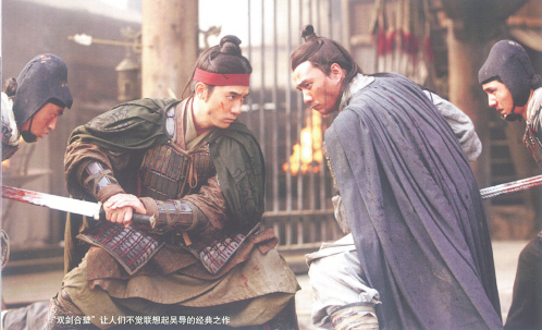從記者的角度來看,戰爭場面的確比較血腥,殺戮鏡頭很多,而吳宇森風格的慢鏡頭和色彩運用則多少以“美感”中和了“暴力”。盡管是第一次拍古裝大片,但吳宇森充分消化了中國古代戰爭中的智慧:有點像當代團體操的八卦陣、破馬陣的狼牙棒、趙云的“空手套白狼”、張飛的獅吼、關羽的一夫當關,再加上搖著羽扇的諸葛亮和表情鎮定的周瑜穿插其中,極富節奏的鏡頭調度讓戰爭場面血肉豐滿。