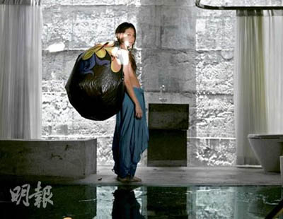 為了表達“花與女孩”的主題,林嘉欣裸露上半身,只以長發遮掩胸部,照片的確很有味道,一點色情感覺都沒有。圖片均來自香港《明報》。