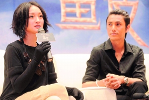 《畫皮》早前曝光了不少陳坤和趙薇的親密戲照片,昨日記者的問題基本都奔此而來。有人很直接問陳坤、周迅和趙薇:“你們三個有床戲,激烈嗎?”陳坤很尷尬地回答說:“導演的要求嘛!庇捎谥餮葜兄挥嘘惱ひ蝗丝催^電影。所以趙薇很吃驚地問周迅:“你們也有床戲嗎?”周迅答:“我們沒有床戲,我們有水戲!甭牭酱嗽,趙薇露出“放心”的神情說道:“我們作為夫妻,有這樣的戲也是正常的嘛!