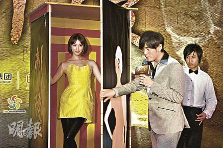 據(jù)香港《明報》報道,周杰倫在記者會上化身魔術師,變出女主角林志玲。有質疑林志玲比周杰倫高,穿上平底鞋的林志玲讓大家來量度高度,原來周杰倫比林志玲高0.5公分,她笑說:“周杰倫是我拍電影以來最高的男主角。”兩人互賣口乖,指對方是心目中最好條件的異性,林志玲形容周杰倫是才子,孝順之余更會變魔術,所以很期待合作;而周杰倫亦表示很期待與這位幾乎是所有男人的夢中情人合作,但他唯一要求女主角不能比他高,“幸好我比林志玲高”。