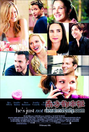 《他沒(méi)那么喜歡你》由斯嘉麗·約翰遜、珍妮弗·安妮斯頓、德魯·巴里摩爾、賈斯汀·朗、本·阿弗萊克、詹妮弗·康納利、賈斯汀·朗等一大堆明星主演。該片改編自由《欲望都市》的顧問(wèn)和編劇兩人共同創(chuàng)作的同名小說(shuō),影片幫女同胞們更聰明地獲得愛(ài)情。和珍妮弗·安妮斯頓之前大賣的《馬利與我》類似,《他沒(méi)那么喜歡你》也沒(méi)獲得影評(píng)人的好臉色。