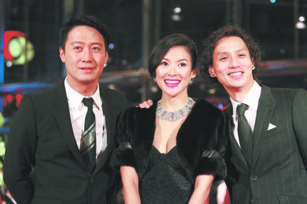 當地時間2月10日晚(北京時間2月11日凌晨),本屆柏林電影節惟一的參賽華語片《梅蘭芳》在柏林電影宮舉行了盛大的歐洲首映儀式。當天柏林的天氣并不是很好,《梅蘭芳》的紅毯儀式還趕上了下雨,但是到場的華人華僑及外國友人還是將最熱烈的歡呼聲送給了這部“神秘而美麗”的中國電影。片中兩位女主角章子怡和陳紅無疑是當晚紅毯上最耀眼的明星。陳紅身穿藕青色的低胸晚裝,上鑲金色刺繡,非常具有中國特色,而章子怡則延續素雅路線,一身藍黑低胸晚裝搭配黑色皮草披肩,在脖頸千萬鉆飾的映襯下,顯得分外雍容華貴。