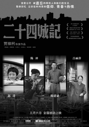 由上海電影集團出品的文藝影片《二十四城記》敲定將于3月6日在國內正式上映。影片導演賈樟柯昨天在接受采訪時表示,《二十四城記》是中國首部以真實的大型國有企業為創作背景的影片。雖然《三峽好人》在內地的票房狀況并不理想,不過賈樟柯對于《二十四城記》的票房前景并不擔憂,只是希望能夠引起中國一大部分觀眾的共鳴。