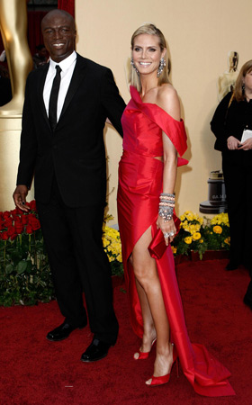 美國西部時間2月22日下午17:00(北京時間2月23日上午9:00),第81屆奧斯卡金像獎頒獎典禮在洛杉磯柯達劇院舉行。圖為名模海蒂·克拉姆(Heidi Klum)與老公Seal攜手亮相奧斯卡紅毯。一身紅色禮服的海蒂更顯高貴典雅。