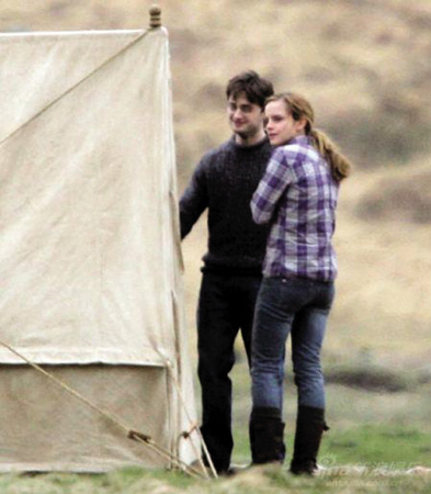 從片場照片以及小說情節(jié)推斷,丹尼爾與艾瑪拍攝的是他們逃亡在外、風(fēng)餐露宿的場面,“羅恩”魯伯特則因為某些原因暫時離開了他們。《哈利·波特7》全名為《哈利·波特與死亡圣器》,這一集電影將一分為二,上部于2010年11月19日上映,下部于2011年7月15日上映。