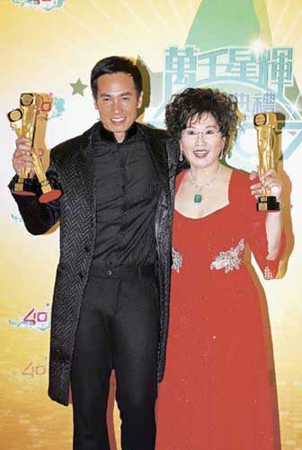 中新網(wǎng)11月18日電 據(jù)香港明報(bào)報(bào)道,無線《萬千星輝頒獎(jiǎng)禮2007》昨日舉行,陳豪與李司棋以大熱門姿態(tài)奪“最佳男、女主角獎(jiǎng)”,陳豪憑《溏心風(fēng)暴》的角色“得得地”登上視帝寶座同時(shí)兼獲“我最喜愛的電視男角色”。李司棋同樣以《溏》劇的“大契”眾望所歸封視后。