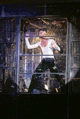 郭富城在巨盒的最頂層跳舞,看似安全,其實(shí)非常危險(xiǎn)。