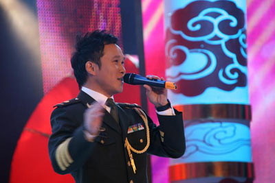在阿克蘇春晚的大銀幕上大家看到了這么一段:“阿克蘇的觀眾朋友們大家好!我是二炮文工團的歌手金波,在這里真摯的祝福大家身體健康、新春快樂。我現在在中央臺軍營大拜年的錄制現場,受阿克蘇電視臺的熱情邀請,我很愿意支持地方電視臺,更高興為祖國邊陲的朋友及駐江官兵們服務……”