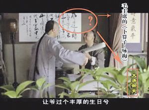 如果說(shuō)《大清御史》是一部無(wú)厘頭作品,時(shí)空可以隨意倒轉(zhuǎn),古往今來(lái)的人和事都自由地在時(shí)空隧道里穿梭,那么,毛澤東的詩(shī)詞懸掛在清代人的居室里,是不妨事的,即使叫三皇五帝捧讀“毛詩(shī)”,也合乎觀眾的審美趣味。可是,《大清御史》偏偏是一部“嚴(yán)肅”的古裝電視劇,這就要求它必須嚴(yán)格地忠實(shí)于歷史”,不得馬虎塞責(zé)、粗制濫造到犯如此低級(jí)錯(cuò)誤。