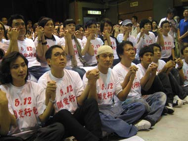 中新網5月16日電 中國四川省汶川縣遭遇特大地震災害,震動波及半個亞洲,數以萬計民眾罹難,災情牽動神州大地, 牽動全世界關注的目光。香港演藝人協(xié)會、香港無線電視、亞洲電視、香港電臺、鳳凰衛(wèi)視、新城電臺六間機構共同組織“一方有難,八方支持”行動,香港媒體及演藝界人士積極響應,15日深夜,兩百多位歌、影、視藝人及媒體從業(yè)人員齊聚香港電臺,參與大合唱錄音,為四川地震災民祈福、加油、打氣。