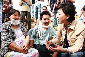 19日,舉國默哀的時刻,楊瀾緊摟著都江堰人民醫(yī)院預防保健科主任廖曉斌的肩膀。災后僅僅兩小時,廖曉斌就帶著確認了丈夫不可能救出的巨大悲傷投入了搶救傷員的工作,而她在成都工作的女兒也是醫(yī)生,因為工作忙碌,母女至今未能見面。楊瀾說,這是眾多大災難中讓我們肅然起敬的平凡女性中的一位———失去自己至愛的親人,卻正在為別人的親人忙碌,而她所能做的是緊緊摟住她們的肩膀,傳遞心中支持的力量。
