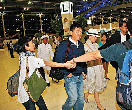 中新網(wǎng)7月18日電 梁朝偉和劉嘉玲下周一(21日)將在不丹舉行婚禮,前日(16日)他們帶著十箱行李飛赴不丹。一對(duì)準(zhǔn)新人前晚抵達(dá)曼谷時(shí)均滿面春風(fēng),并在機(jī)場(chǎng)免稅店狂買約30瓶香檳及80條香煙。看來(lái)二人的婚禮已準(zhǔn)備煙酒齊飛,向來(lái)喜歡小酌的新娘子必定不醉無(wú)歸。