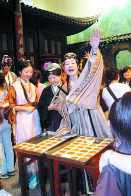 圖文:“王夫人”歸亞蕾片場發(fā)月餅