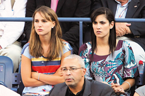 娜塔莉·波特曼(左)神情緊張地觀看美網決賽。