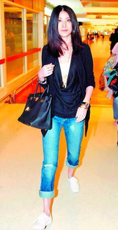 陳慧琳手提價(jià)值近8萬港幣的愛瑪仕黑色皮手袋去臺灣開工,她笑稱:“這包有一半來自雷頌德的禮金。”