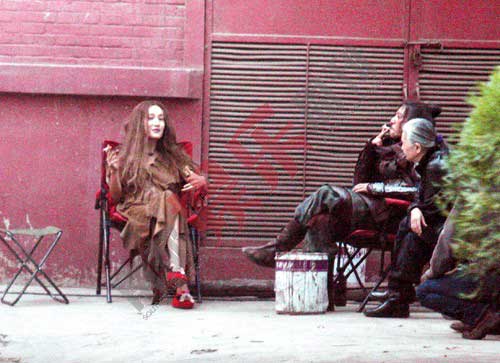 片場(chǎng)休息的Maggie Q煙不離手,貌似瘋子,卻媚態(tài)十足。