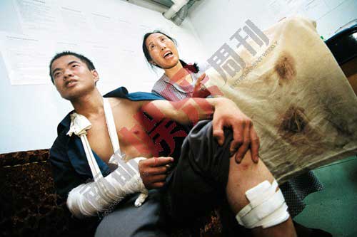 ▲2003年6月21日 100多名壯漢拎著長柄消防斧、砍刀涌向孫寶和的熱浪迪吧,迪吧部門經理崔巖、保安王勇、孟龍等都被砍成重傷住院搶救。