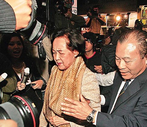 至晚上約7時15分,許世勛夫婦抵達福臨門,穿上金色衫的許世勛太太,繼日前在嘉亨婚禮上黑面皺眉后,昨晚一見大批記者在場又再皺眉黑面,面上完全沒有笑容。