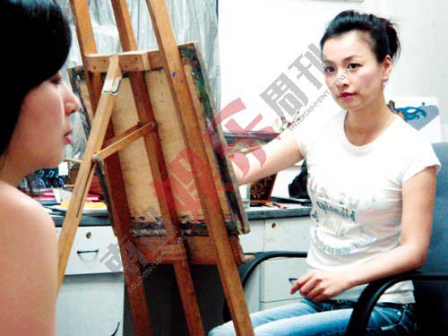 很快張庭就成為上師大美院的正式研究生,她那一屆只有她一個學生,專業(yè)是裝飾設(shè)計,不過素描油畫是必修課。她常常一個人在畫室里畫人體模特,無人打擾,司機接送,滿身名牌,真的是這個學校里最高端的學生了。張庭每周三四天會定時練畫,8個小時不間斷,“表演是一種藝術(shù),它兼具理性和感性,我覺得美術(shù)跟表演是相通的。”