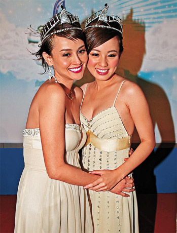 中新網12月8日電 前晚(6日)亞視舉行亞姐總決賽,大會邀請到85年至07年的部份歷屆亞姐撐場,眾人身穿吊帶低胸現深溝,盡秀驕人身材。其中新婚陳煒酥胸半露,已是兩女之母的首屆亞姐冠軍黎燕珊,一身低胸打扮,配上價值1,200萬元的鉆飾,風頭最勁,而朱慧珊也戴上近千萬首飾搶鏡。