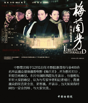 《梅蘭芳》上映首周末就在全國取得了4218萬元的票房。中影集團新聞發言人翁立稱,這是一個讓“各方都滿意”的成績,他透露影片1.2億的票房是發行方的底線。