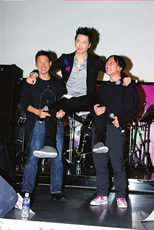 發(fā)布會現(xiàn)場,心情不錯的庾澄慶經(jīng)常大笑得前仰后合,張學(xué)友和陳奕迅更是讓他興奮不已。兩位好哥們兒送上大包的零食,祝福庾澄慶在香港更加“吃得開”。在哥兒仨開唱之前,張學(xué)友特別提醒眾人:“請大家注意歌詞。”庾澄慶哭笑不得地唱起了《愛你的只有一個我》,張學(xué)友和陳奕迅一邊和聲一邊搞笑地伴舞。拍合影的時候,張學(xué)友和陳奕迅合力把站在中間的庾澄慶扛上肩膀,張學(xué)友還不忘問道:“這下心情好很多了吧?”再三被追問如何對待妻子伊能靜的“外遇”,庾澄慶說:“處理完之后會告訴大家的。”至于是否擔(dān)心這個時候推出新碟會被質(zhì)疑借機炒作,庾澄慶表示:“我不會拿家里的事情做新聞點,更何況這件事情很重要。如果我不工作把自己關(guān)在家里,就是很好的解決方式嗎?不是。” 記者 朱雅清