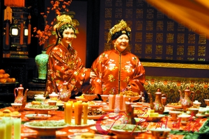 記者:今天拍的是“榮國府元宵開夜宴”的重頭戲,60多位演員都在,剛才看這場戲NG了幾十次?