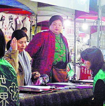此攤一次收費220元,用的是易經加西方塔羅牌合璧的“先天塔羅”,她望著桌上擺的水晶球“法器”發楞,卻遲遲不敢把心中所求何事全盤托出,得知要填個人資料后,她露出驚訝表情,婉拒離去,記者上前詢問,店家不愿透露,僅低調說:“這是人家的私事,我們也不方便說!
