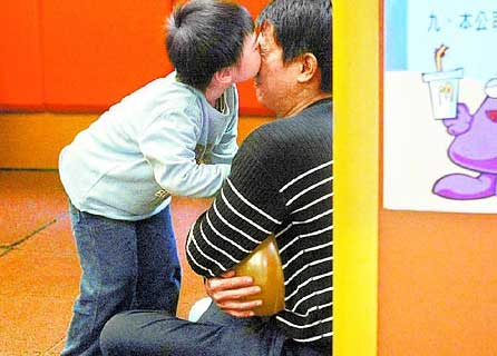陳威陶(右)陪兒子在麥當(dāng)勞游戲間玩耍,小蝦米開心地猛親老爸眼睛。