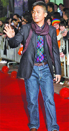 梁朝偉走首映紅毯,向影迷揮手。