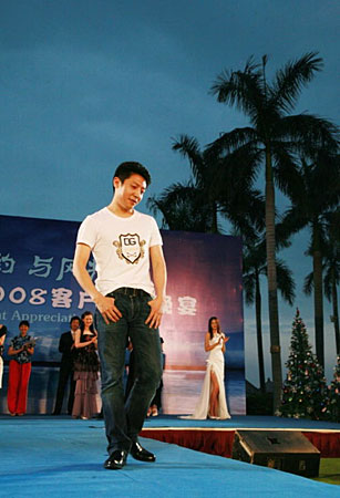 1月16日,網(wǎng)友“天子羽”在博客中曝光了央視主持人在2008客戶(hù)答謝晚宴上,做時(shí)裝秀表演的照片。