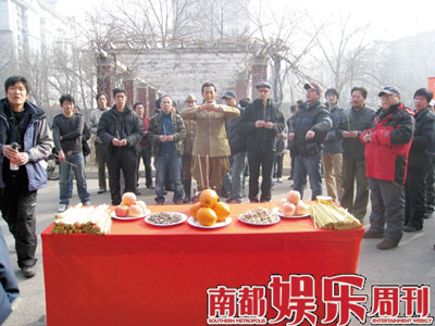 劇組在正月十六這一天拍攝的是王志文和女演員劉威葳的戲,王志文扮演影片的另一大反派、憲兵隊特務處長王田香,而劉威葳扮演的則是一個共產黨的女刺客,她因為刺殺行動失敗受傷被抓,使得日軍獲悉有共黨間諜潛伏。這是王志文結婚生子后第一次接拍新戲,當天在片場王志文看上去又黑又瘦,顯得疲憊中帶有幾分陰沉,他也留著大背頭,穿著藍色的日本海軍制服,很有幾分漢奸特務的“陰勁”。拍攝的間隙王志文還是改不了煙不離手的習慣,作為昔日熒屏上陽光帥哥的代表,與今天的后輩黃曉明相比,王志文具有了中年人的穩重和深沉,拍完戲后他還坐車到天津電視臺順便錄制了一檔節目。王志文是影片幾大主演中唯一的非華誼兄弟公司的簽約藝人,他扮演的王田香陰險毒辣,冷酷無情,與武田聯手對幾位嫌疑人展開排查,除了四大主演外王志文的戲份最重,憑借他老辣的演技塑造出這個迥異的漢奸特務形象將可能會成為影片的一大看點。