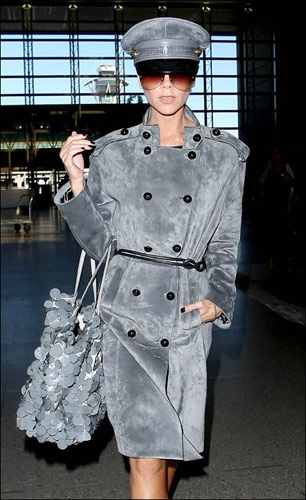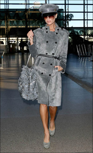 你雷死我了!許久不見的維多利亞·貝克漢姆,一出現就把我們雷了個人仰馬翻。3月5日的維多利亞身穿這身高級女軍官裝扮走出了機場,軍官大衣勉強可以用帥氣來形容,但是這頂帽子。。。真的是無語配上維多利亞的黑面還有那個不搭調的花瓣書包,維多利亞就算想體現自己的女王氣質,但是也不用這樣吧,就算今年軍裝樣式的外衣還是流行,可是也不能配上這樣的帽子。這樣走在路上還是T型臺啊。