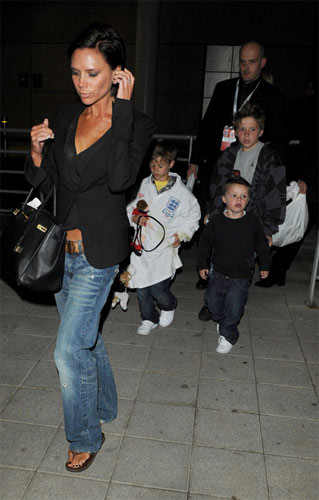 最近有傳聞和婆婆因為孩子的關(guān)系不合的黑臉辣媽維多利亞·貝克漢姆上周六(3月28日)帶著自己的3個兒子,前去球場為老公貝克漢姆助陣,吶喊助威。