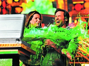 今年的“驚喜”還包括頒獎人休·杰克曼、桑德拉·布洛克被惡搞,打開頒獎箱時,兩人慘遭綠色巖漿噴一身,只能苦笑。此外,上個月在格林美頒獎禮前夕痛毆女友蕾哈娜的克里斯·布朗,本來亦有份提名,及后自動退出;而當晚,亦未見有份角逐最受歡迎女歌手獎的蕾哈娜出現。泰漁
