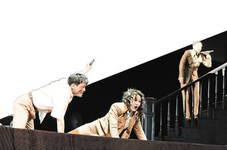 相比之下,在表現四個嫌疑人之間勾心斗角的某些橋段中,舞蹈就比打斗來得詼諧許多。有一段,其余三人一邊扭著好玩的倫巴,一邊卻在拼命詆毀吳志國:“吳部長干嘛去了?人家是部長,官高一級壓死人嘛!”記者 陳宇浩
