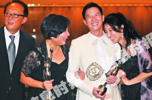努力20年首獲影帝的張家輝,前晚表現風騷,愛妻關詠荷一直緊跟其后,一臉崇拜,兩人還大方在媒體面前上演親吻秀。對于丈夫獲獎,關詠荷很是感慨,“他為這一天付出了多少,只有我才知道!