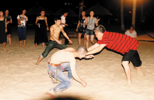 本山的好人緣在圈里是公認的,張藝謀曾在記者面前評價趙本山是“絕對好人”。在徒弟面前,趙本山同樣也是他們的朋友和哥們兒。在海南巡演期間,記者感受到了本山和徒弟的親密無間,在飯桌上,徒弟們和本山推杯換盞就像是朋友。此時,本山也沒有平時的架子,他會和大家談笑風生,整個演出團隊打成一片。無論是誰,只要有演出、生活的問題,本山肯定耐心勸慰,讓他們拋開顧慮。興致來了,本山還會不顧年齡的差異和徒弟們在沙灘上摔上幾跤。男孩子可以和師父摔跤,但女孩子都希望與本山合影,面對著一望無際的大海,女演員和舞蹈隊的姑娘們提出了與本山合影的要求。本山對孩子們的要求不會拒絕,他甚至會主動弓下身子遷就個子稍矮的女孩子。當十多張照片拍完之后,記者明顯看到本山有了疲憊的跡象,于是提出“讓趙老師歇會兒再拍吧”,但本山堅持和每個演員照完。“難得有這樣的機會和大伙玩,都是自己人。”輕描淡寫的一句話,迅速拉近了自己和演員們的關系。