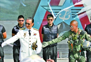 昨日,除了謝霆鋒變身帥氣飛機師,連“四哥”謝賢也穿上白色的海軍服扮成“艦長”,為兒子3年來的首張專輯發布助陣。