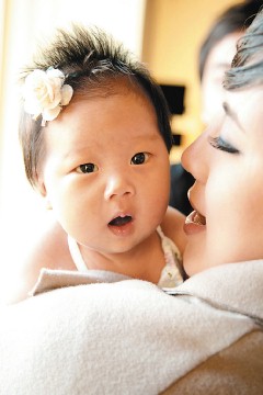 中新網11月1日電 胡瓜之女小禎產后首度帶女兒Emma李曼唯曝光,小寶貝體重近5公斤,胖呼呼的小臉,喜感極了,簡直就是外祖父胡瓜的翻版。小禎、李晉良則搶著說“女兒像我”,妙的是,古靈精怪的小娃兒,一聽到有人說“Emma有雙下巴”,當場“哇”得哭出聲來。
