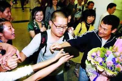 昨天下午,本次友迷“高考”的狀元唐艷艷也加入了機場的“友迷”大軍。她告訴記者,自己是晚報娛雯子的鐵桿“粉絲”,經(jīng)常在雯子博客上發(fā)表評論。見到這份“高考”試卷后,從小聽張學(xué)友的歌長大的她便第一時間參加了答題,沒想到居然拔得頭籌。“試卷上的題目非常有意思,一看就會被吸引住”,她直夸出題的人“太有才了”,居然連張學(xué)友所扮演過角色的武功高低都能弄清楚。唐小姐獲得了張學(xué)友廈門演唱會的門票,幸福得“暈乎乎的”。而之后在親眼見到學(xué)友哥本人后,她“更暈了”。(記者 龔小莞)