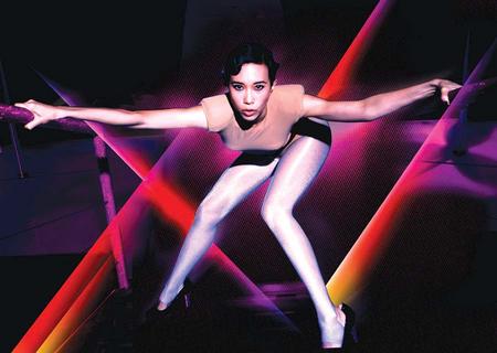 Karen身穿巴黎時尚品牌Balenciaga的膚色緊身服、足蹬高跟鞋,在燈光魅惑的舞臺上搔首弄姿,擺出擅長的現代舞姿勢,身材曲線一覽無遺,十分性感。