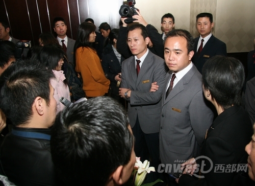 由于今天是婚禮正式舉行的日子,酒店方的保安工作比此前進一步加強。早早將舉行婚禮的二樓列為媒體禁地,對所有進入二樓的人員都進行嚴格盤查,肩負采訪任務的記者只得再次滲透進入二樓,期間酒店方也曾試圖將媒體趕離二樓但未獲成功。最終媒體被阻擋在二樓宴會廳門外。幾番拉鋸戰(zhàn)不但讓酒店保安人員心里壓力不斷增大,也使雙方的對立情緒上升。