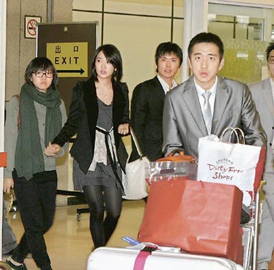 有不少來自日、韓的旅客見到尹恩惠,都紛紛掏出相機(jī)追星,還在她上車前一度發(fā)生推撞,相機(jī)幾乎撞傷她的臉,令她的表情轉(zhuǎn)為凝重,連行李都忘了拿,在6名保安護(hù)駕下匆忙上車。入住飯店后尹恩惠作風(fēng)平民,一進(jìn)飯店就先吃辛辣面,還要求工作人員多買幾包方便面?zhèn)溆茫黹g則吃日本料理。