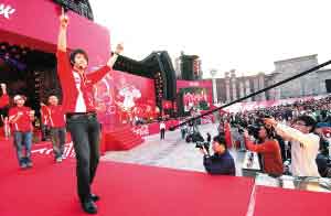 前日傍晚,由香港知名音樂人林夕和雷頌德共同為奧運贊助商創作的歌曲《紅遍全球》在奧運圣火點燃之際發布。在韓國著名組合Super Junior成員韓庚領頭下,18名來自全國各地的奧運火炬手與前奧運冠軍高敏等一起現場演繹了這首歌。作為目前韓國最當紅的組合Super Junior(以下簡稱SJ)里面唯一一個中國成員,韓庚在中國的人氣銳不可擋,對于這次有幸擔任1號火炬手,他前晚接受本報獨家專訪時表示感到很開心,一定要看奧運的開幕式,并且他透露今年會將大部分時間放在中國,而且SJ也會分組一隊專門針對中國市場的組合,并計劃推出中文專輯。